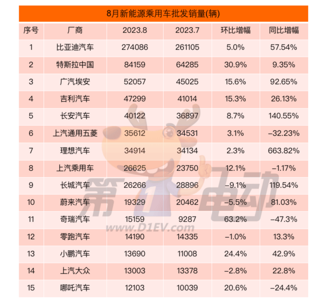 作为广汽旗下最耀眼的新能源品牌,广汽埃安以持续增长的销量稳居新源源势力榜前三。9月1日,广汽埃安公布了8月份销量数据,终端交付突破了5万辆,达52057辆,实现“交付超生产”。而广汽埃安上半年实现产销21.67万辆和20.93万辆,同比分别增长117.39%和108.81%,且连续4个月销量稳居4万台以上,销量位居国内新能源乘用车第三位,市场份额仅次于比亚迪(002594)及特斯拉。